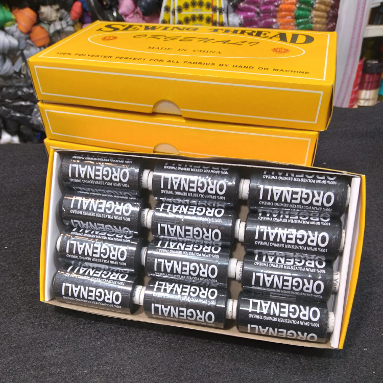 قرقره خیاطی مشکی رنگ اورجینال در بسته ۱۲ عددی مناسب خیاطی خانگی و صنعتی و انواع دوخت و دوز کارهای هنری