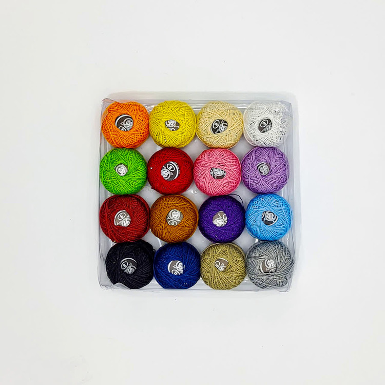 نخ قرقره ای عمامه ای (مناسب گلدوزی و عمامه دوزی) بسته 16 رنگی (خیاطی و خرازی)