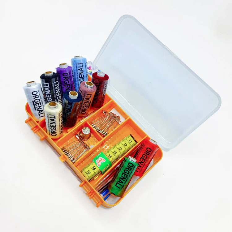 جعبه خیاطی پر به همراه اقلام (خرازی و خیاطی )