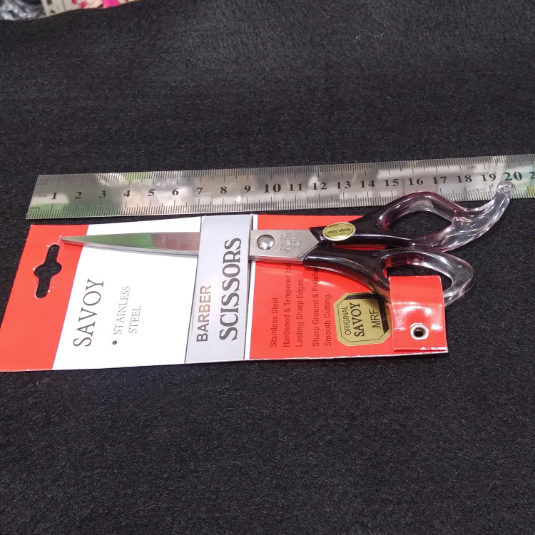 😁قیچی دسته شیشه ای مارک ساووی انداره متوسط دم دار 🙂این قیچی دم دار هست و مناسب خدمات و کار های آرایشی بطور روزمره و خانگی هستش .