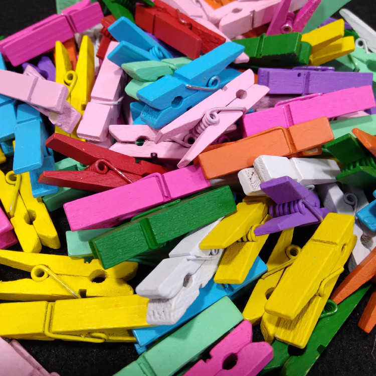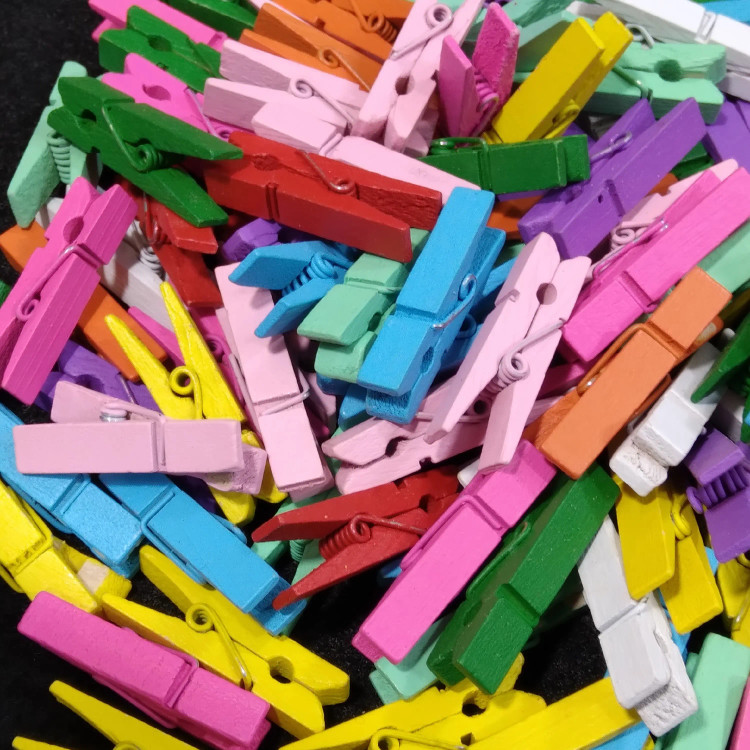 گیره کاغذ چوبی با هفت رنگ متنوع بسته 100 عددی (خرازی و خیاطی)