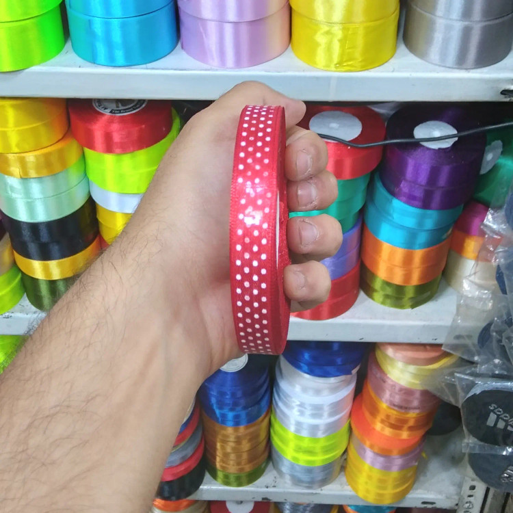 روبان ساتن خالدار 13 میل رنگبندی کامل (۲۰ یاردی)(خرازی و خیاطی )