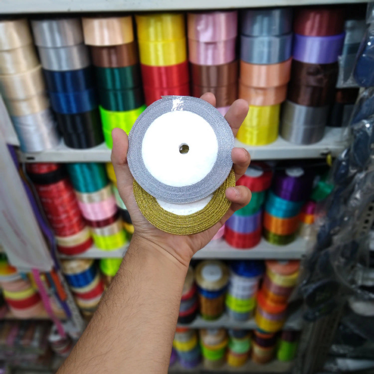 روبان لمه دوزی بسته هایی که شما میخرید هم قیمت چند متر بیرون هست . این روبان ها در دو رنگ طلایی و نقره ای تقدیمتان میشه که مناسب لمه دوزی و طراحی دسته گل عروسی و تزئینات هست . رنگ مورد نظر رو پس از سفارش در بخش گفت و گو ها اعلام کنید .