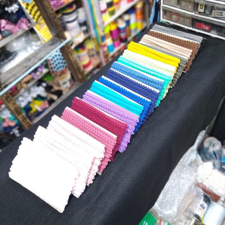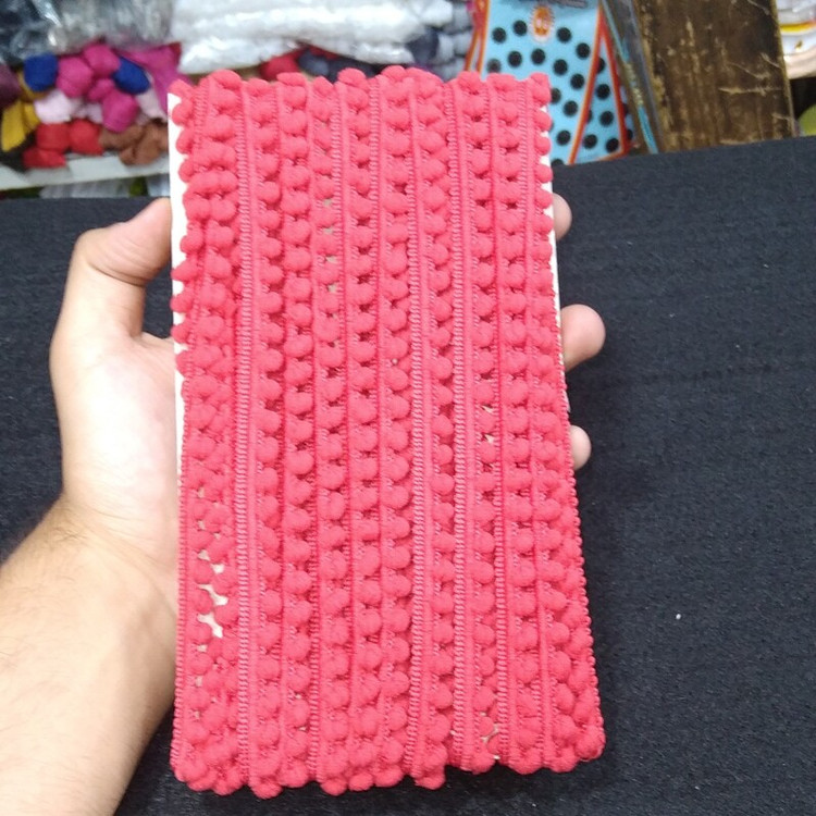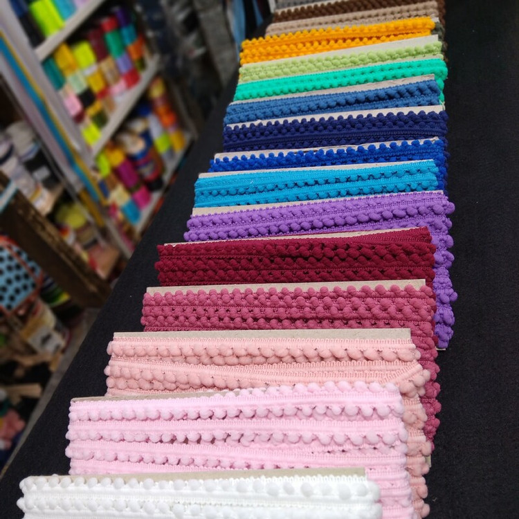 نوار تزئینی پوم پوم مناسب لباس خواب و لباس های فانتزی و عروسک سازی که در بسته های ۹ یاردی که میشه هشت متر و ۱۰ سانت خدمتتون ارائه میشه که میشه گفت قیمت بسته ۹ یاردی به اندازه ۲ متر فروشگاه های دیگر هست ... باخرید عمده این محصول میتونید ۱۰ درصد تخفیف بگیرید