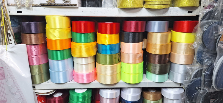روبان ساتن 4 سانت رنگبندی کامل (36 یاردی ) (خرازی و خیاطی)