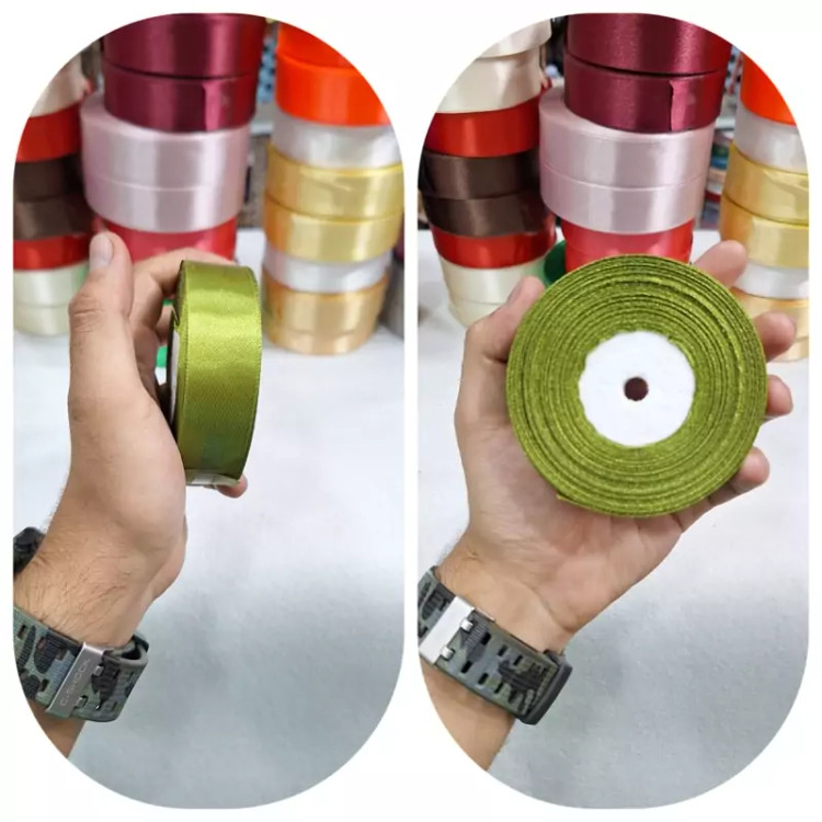 روبان ساتن 2.5 سانت (25 میل)رنگبندی کامل (36 یاردی معادل 34 متر ) (خرازی و خیاطی)