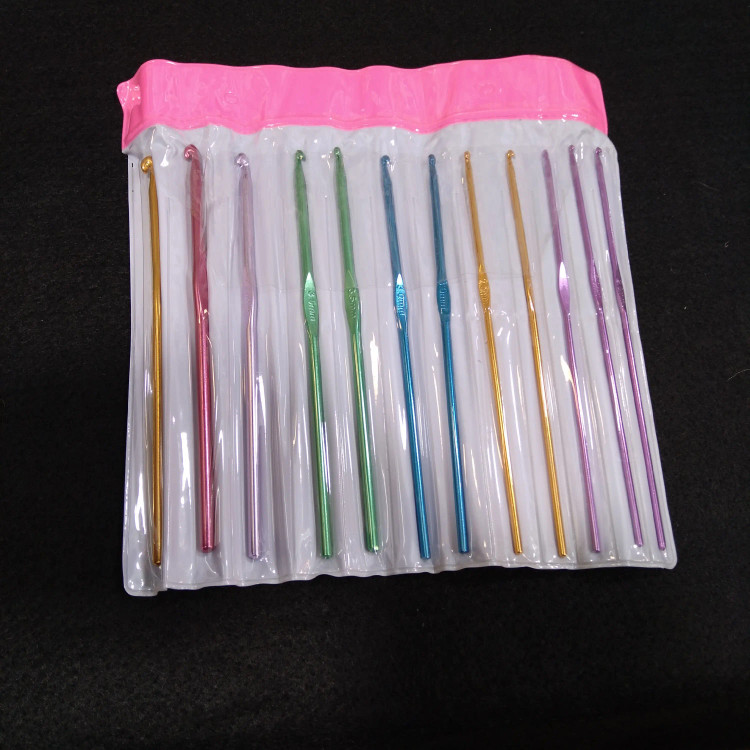 میل قلاب بافی بدون دسته تفلون از شماره 2 تا 6 بسته 12 عددی